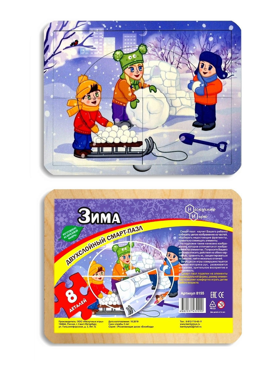 Смарт-пазл поделен на элементы индивидуальной формы*, размер элементов позволяет комфортно играть детям любого возраста. Размер смарт-пазла 190*145мм. Изготовлено из березовой фанеры.