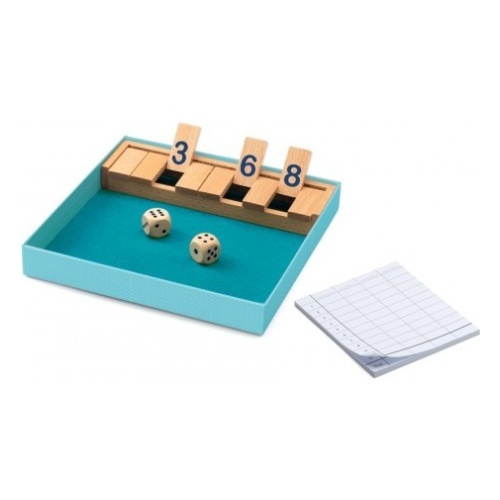 Как играть: каждый игрок по очереди кидает кубики и закрывает число номеров, соответствующее сумме точек на кубиках. Таким образом, если общее число точек равно 7, игрок может закрыть любую комбинацию номеров: 7, 5 и 2, 4 и 2 и 1 и так далее. Удача должна быть на вашей стороне,... но вы также должны следить за своими числами!
