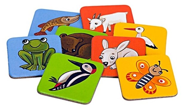 В комплекте 5 игровых полей и 30 жетонов с животными.