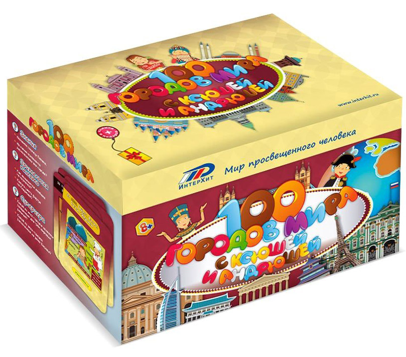 В окружении соперников по игре, которые так же жаждут победы, вам будет гораздо интереснее открывать карточки с новыми городами и отвечать на вопросы ведущего! Картинки на полях и фасадах помогут вам более точно сформировать представления о городах и запомнить интересные сведения о каждом из них.