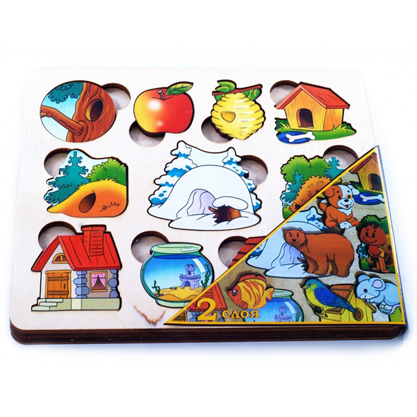 - Достаньте все картинки из ячеек, разложите их на столе и дайте малышу задание найти для каждого животного соответствующий домик. Когда задание будет выполнено, можно начинать размещать вкладыши в ячейках в соответствии с их контурами.