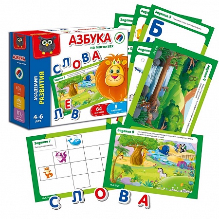 С игровым набором малыш быстро запомнит названия букв, научится составлять слова, разовьет внимание.