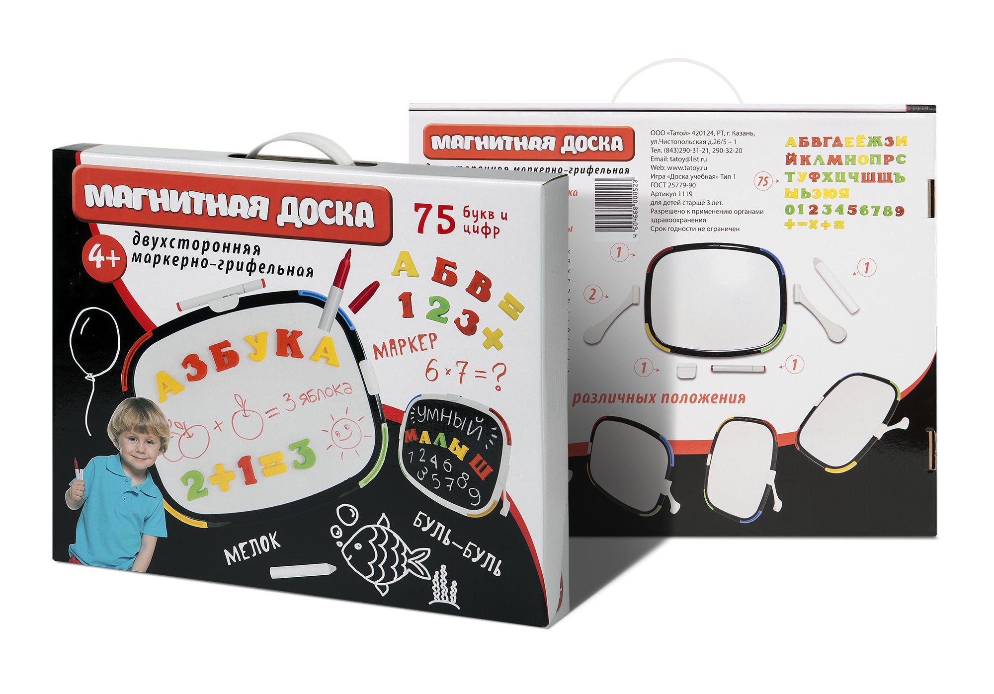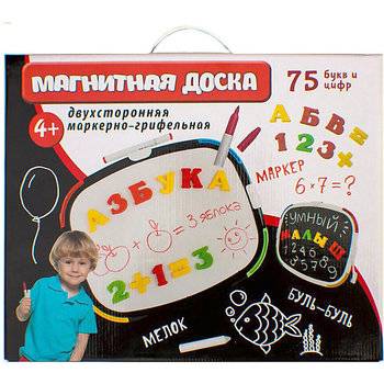 Умный малыш. Магнитная доска Двухсторонняя, 75 букв, цифры, мел, маркер.