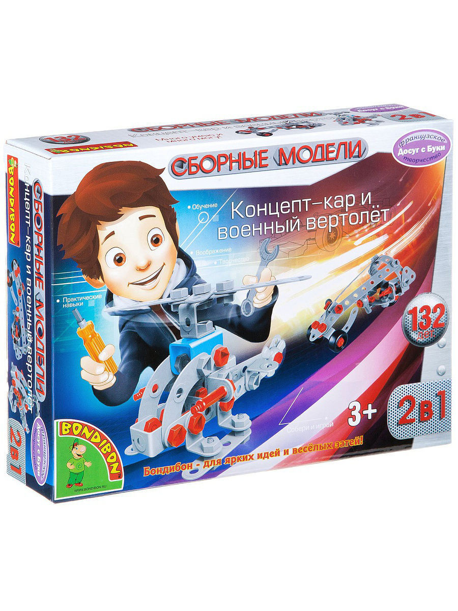 Сборные модели 2 в 1 "Концепт-кар и военный вертолет", 132 дет. Бондибон