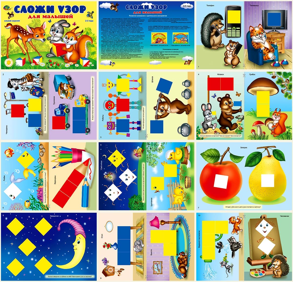 Для самого первого знакомства с кубиками «Сложи узор» мы предлагаем вашему вниманию альбом «Сложи узор для малышей». Этот альбом предназначен для игр с детьми двух-трёх лет. Простые задания-схемы и веселые картинки помогут малышам развиваться, играя. Регулярные занятия будут способствовать развитию внимания, зрительного восприятия, мышления, воображения, а также помогут воспитанию усидчивости и самостоятельности.
