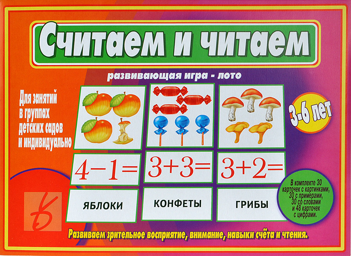 В корзинуПеред началом игры разрежьте карты по пунктирным линиям, у вас получится 30 карточек с картинками, 30 карточек с примерами, 30 карточек со словами и 48 карточек с цифрами.