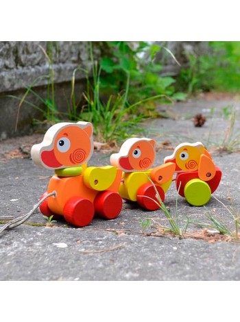 Деревянная игрушка Уточки - игрушка, выполненная из деревянных деталей. Такой игрушкой дети развивают координацию движений, равновесие и укрепляют мышцы. Так как каталка едет сзади, дети освоят пространство, находящееся за их спиной. Придумывая различные игровые сюжеты, у детей улучшится воображение, фантазия и моторика.