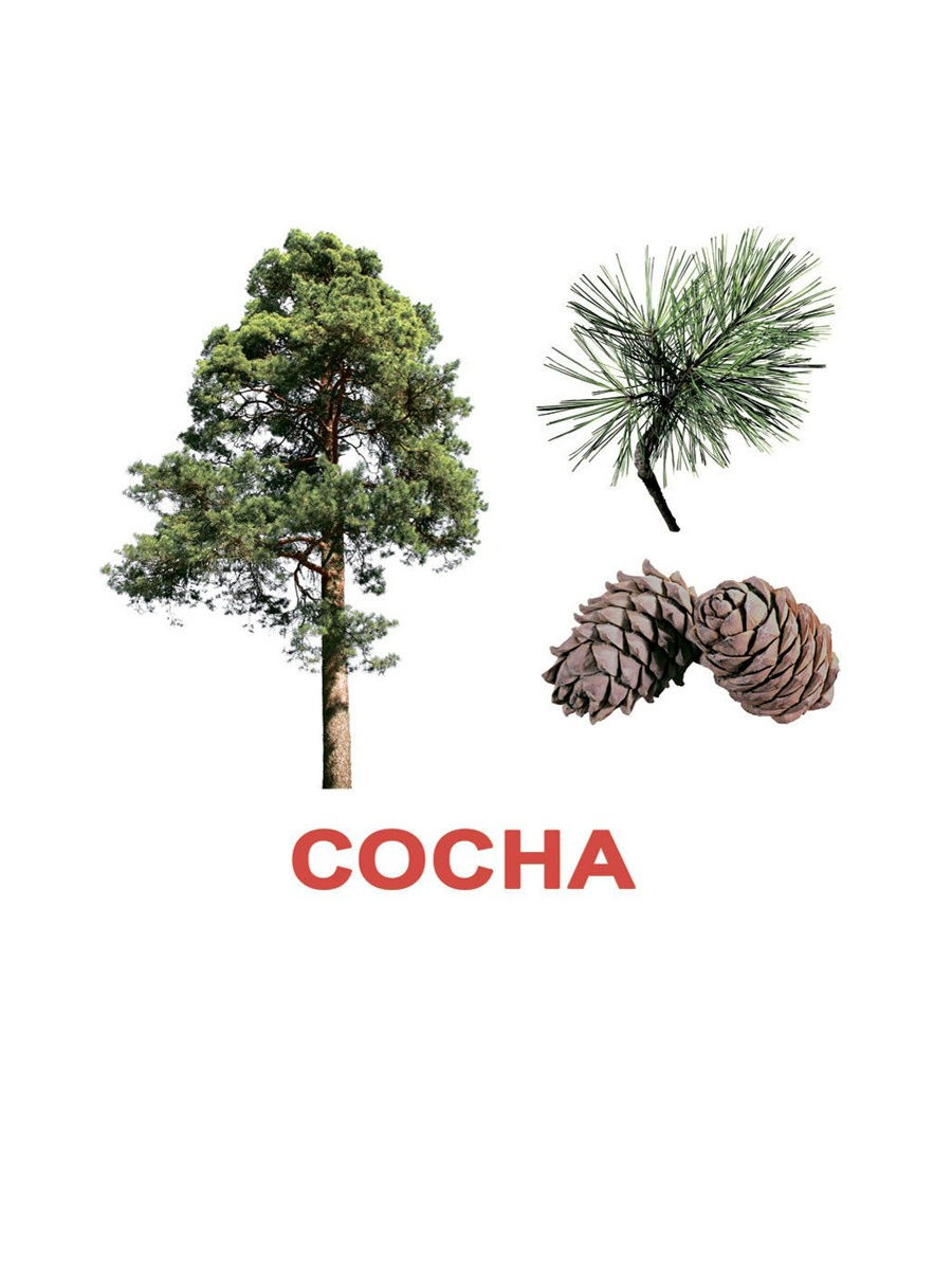 В корзину20 карточек с фотографиями деревьев.