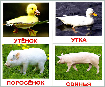 Каждая карточка этого тематического набора посвящена домашним любимцам и питомцам, помощникам человека, традиционным обитателям фермы.