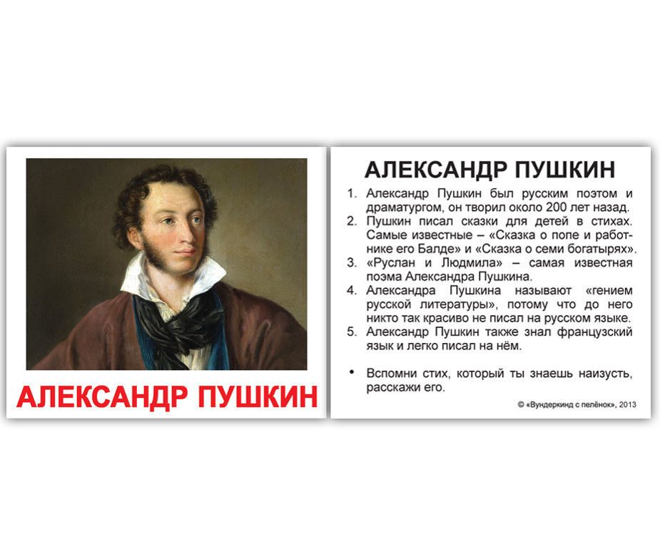 Набор содержит 40 двусторонних карточек с подписями на русском языке. На одной стороне карточек изображены выдающиеся личности, а на другой стороне — факты, задания и загадки.